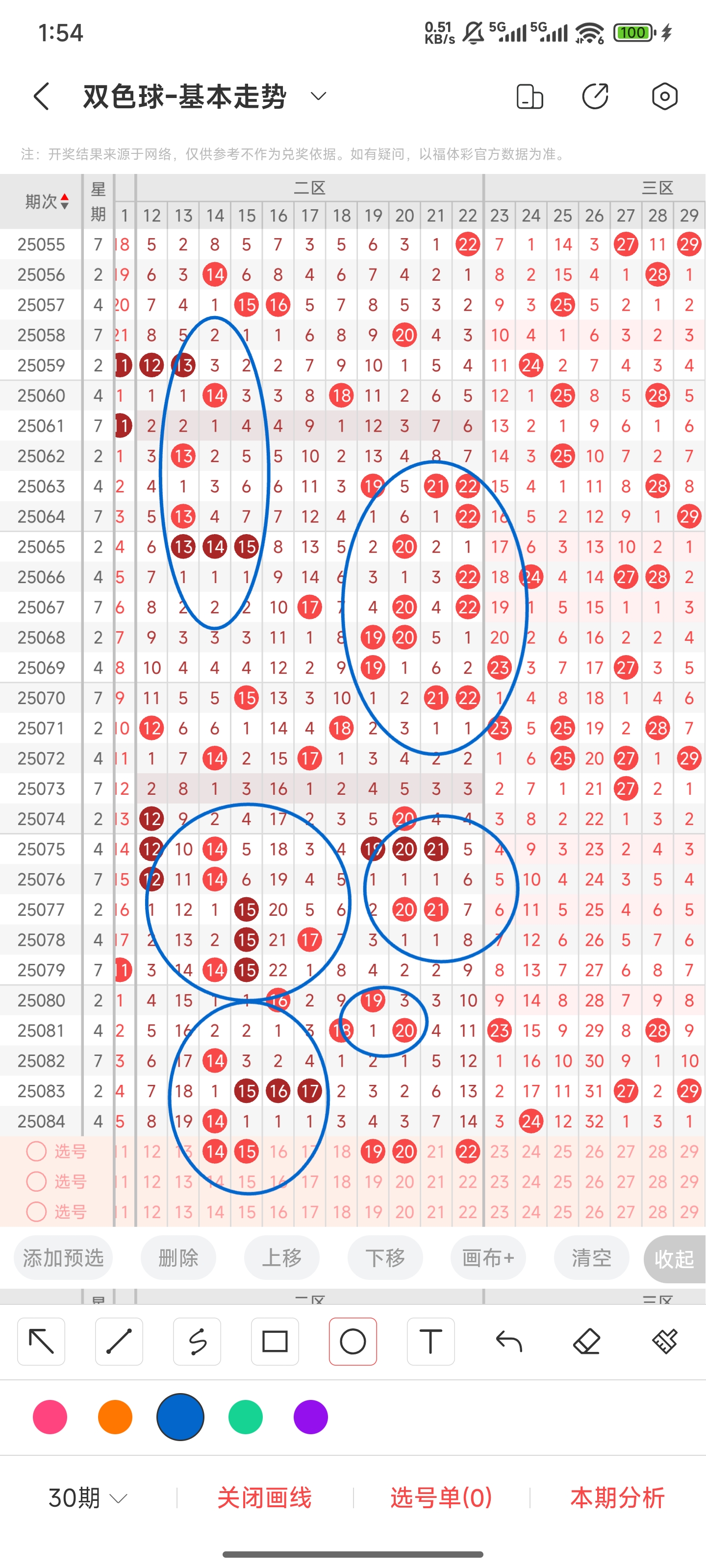 上一期二区开出为14。往前一期开出了15,16,17。因为上期只开出了一个数字,那么本期应该会有数字进行回补。14号是比较热门的号码,有连出的记录,本期也可以考虑一下连出。通过走势图我们可以看到二区也基本经常开热门号码。那么我们就关注近几期没有开出的热门号码。例如15,19,20,22等。所以推测本期可能开14,15,19,20,22等号。