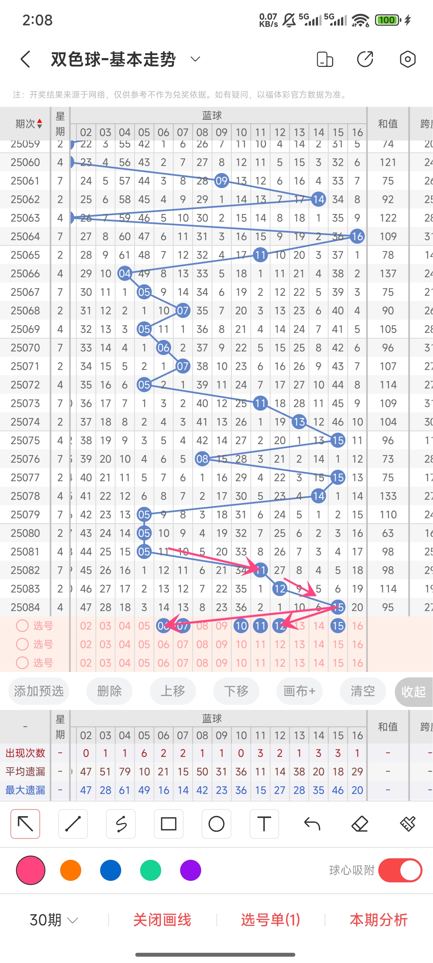 近期回顾:第25084期双色球文章中15+5推荐中命中06,08,10,14,33等5个红球,命中蓝球15。