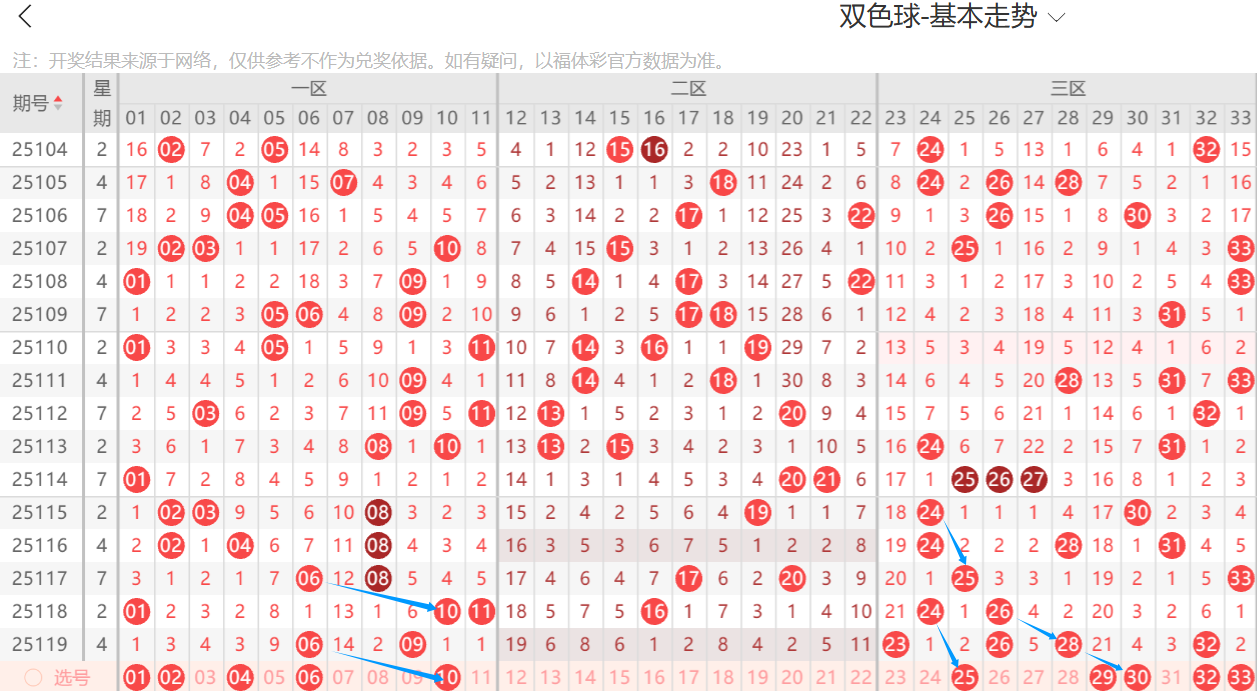 双色球120期分析,上期三胆全中,看断二区正确,思路几乎全对