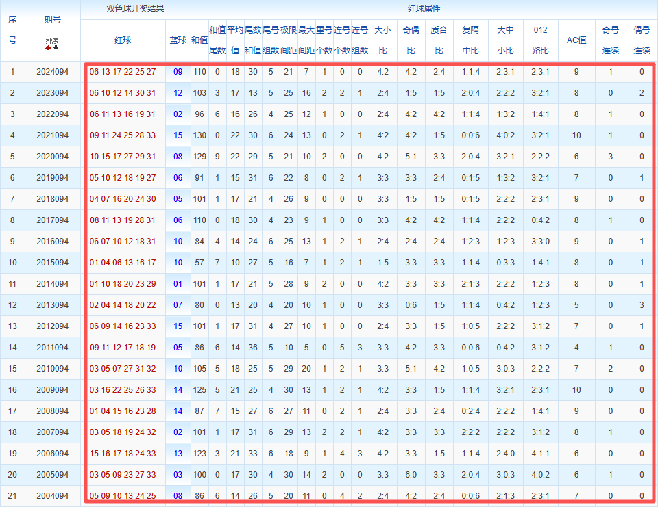 本期双色球研究分析从以下几个方面入手:①往年同期分析②定位分析(奇偶分析、012路分析、振幅分析、遗漏值分析)、③大小比分析、奇偶比分析、012路比分析、复隔中分析、④临位间距分析等。