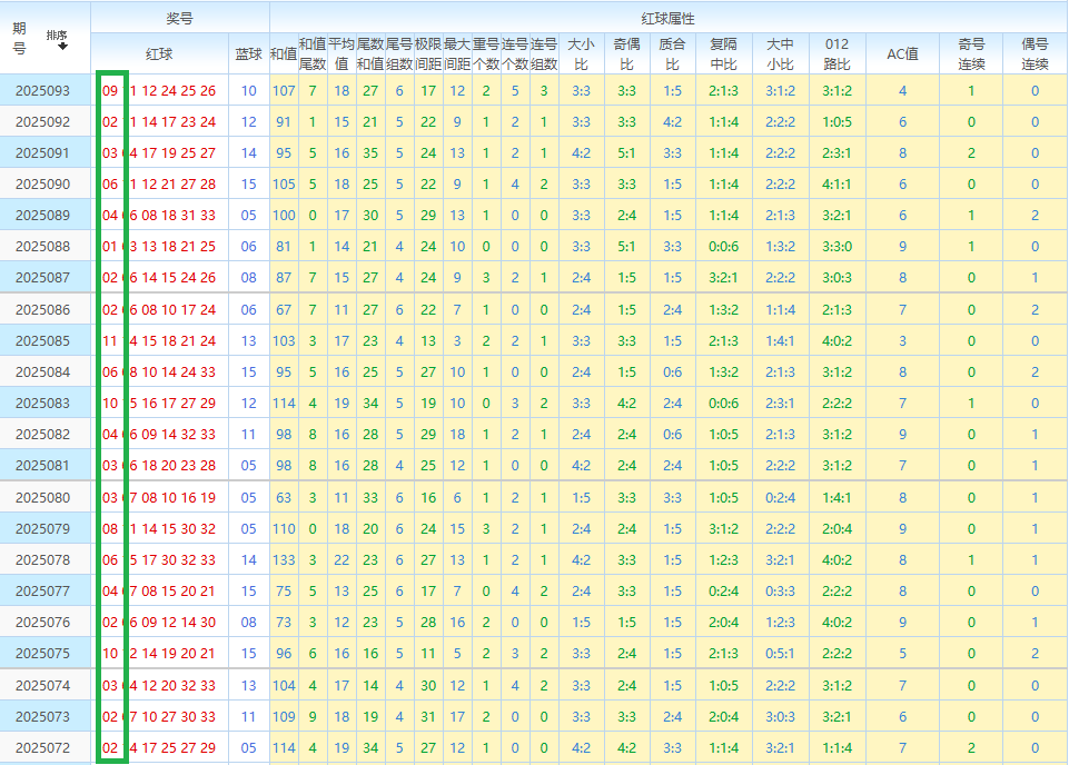 先回顾上期开奖号码:09 11 12 24 25 26—10。