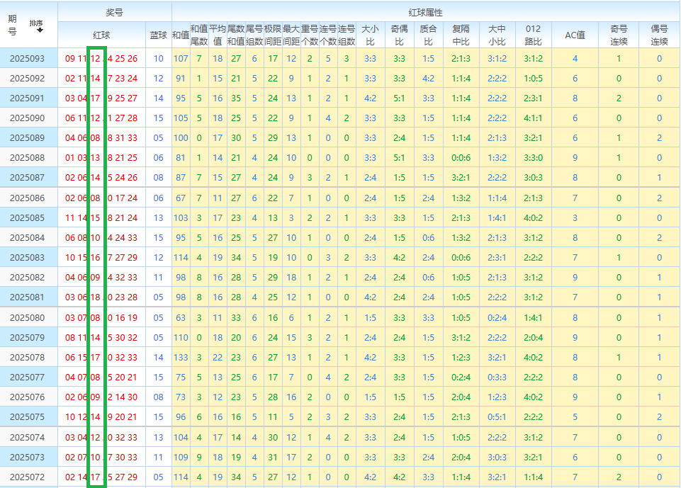 上期红球开奖情况:09 11 12 24 25 26