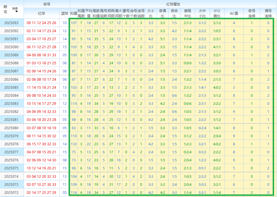 二、看平均值、尾号组数、极限间距、最大间距、重号个数、连号组数,大小比、奇偶比、012路比、复隔中比