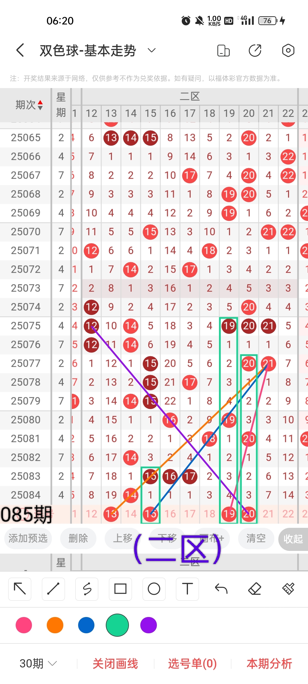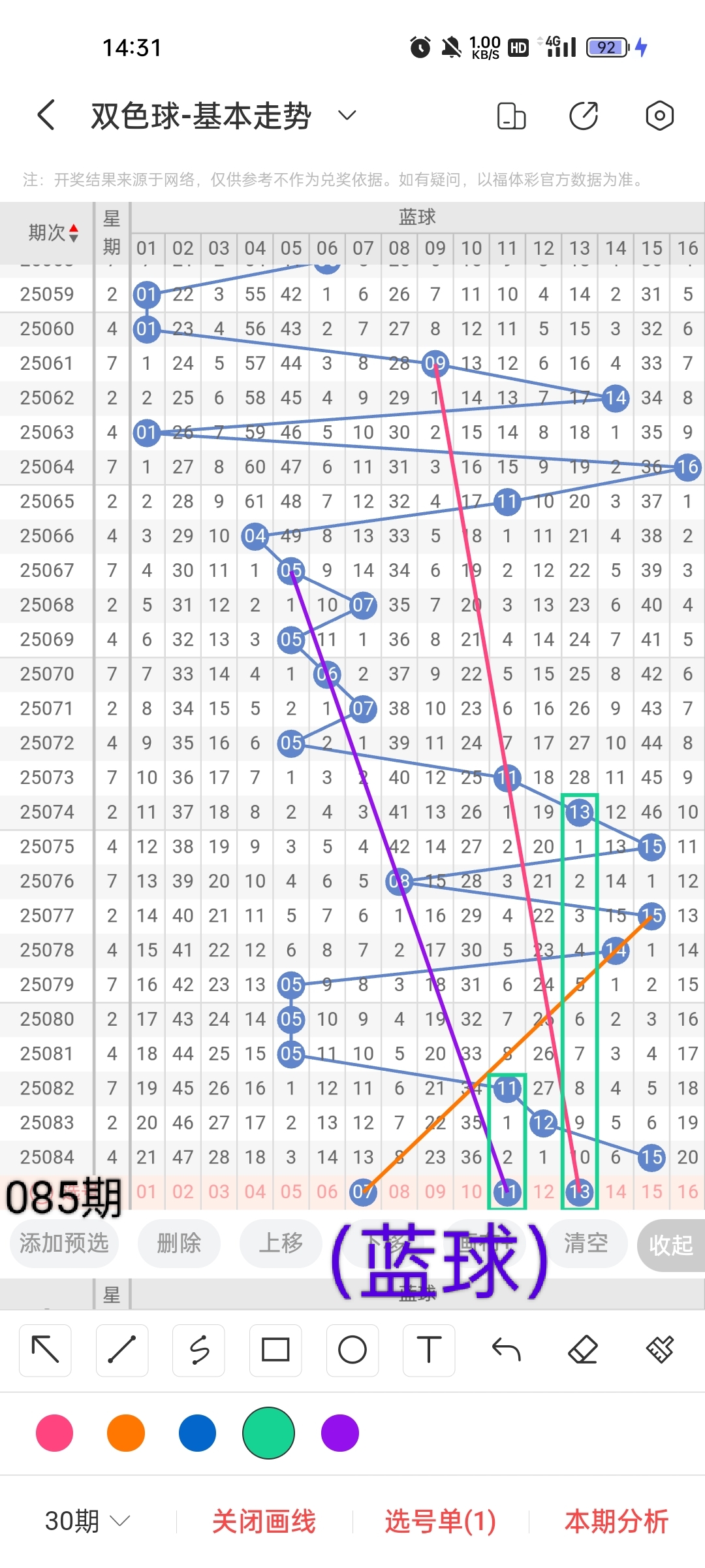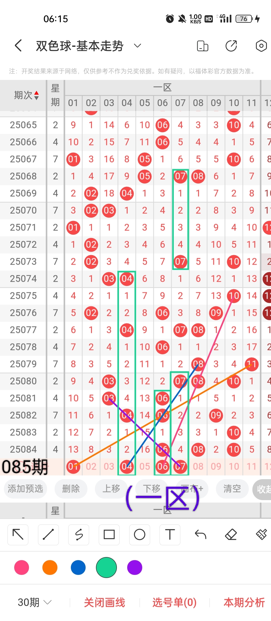 通过以上对上期的简单回顾,下面进入双色球第2025085期(下面简称本期)的选号分析: