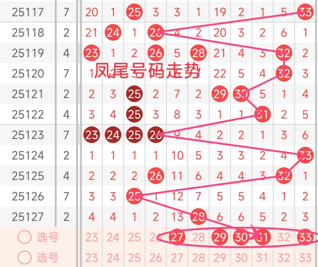 红球三区推荐(23~33): 上期开出1枚号码,号码为28,本期红三区建议出号1-3枚,本期红三区建议出关注号27、29、30、31、33。