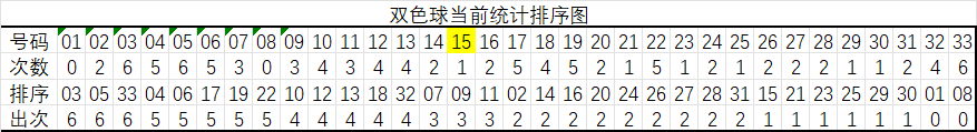 红球15码大底统计顺序:03,05,33,06,17,19,22,12,13,18,32,09,02,14,16