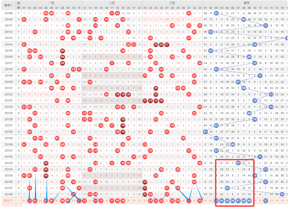 蓝球区,上期蓝球开到四区号码,总体上看,本期比较看好....(留给会员文章吧);