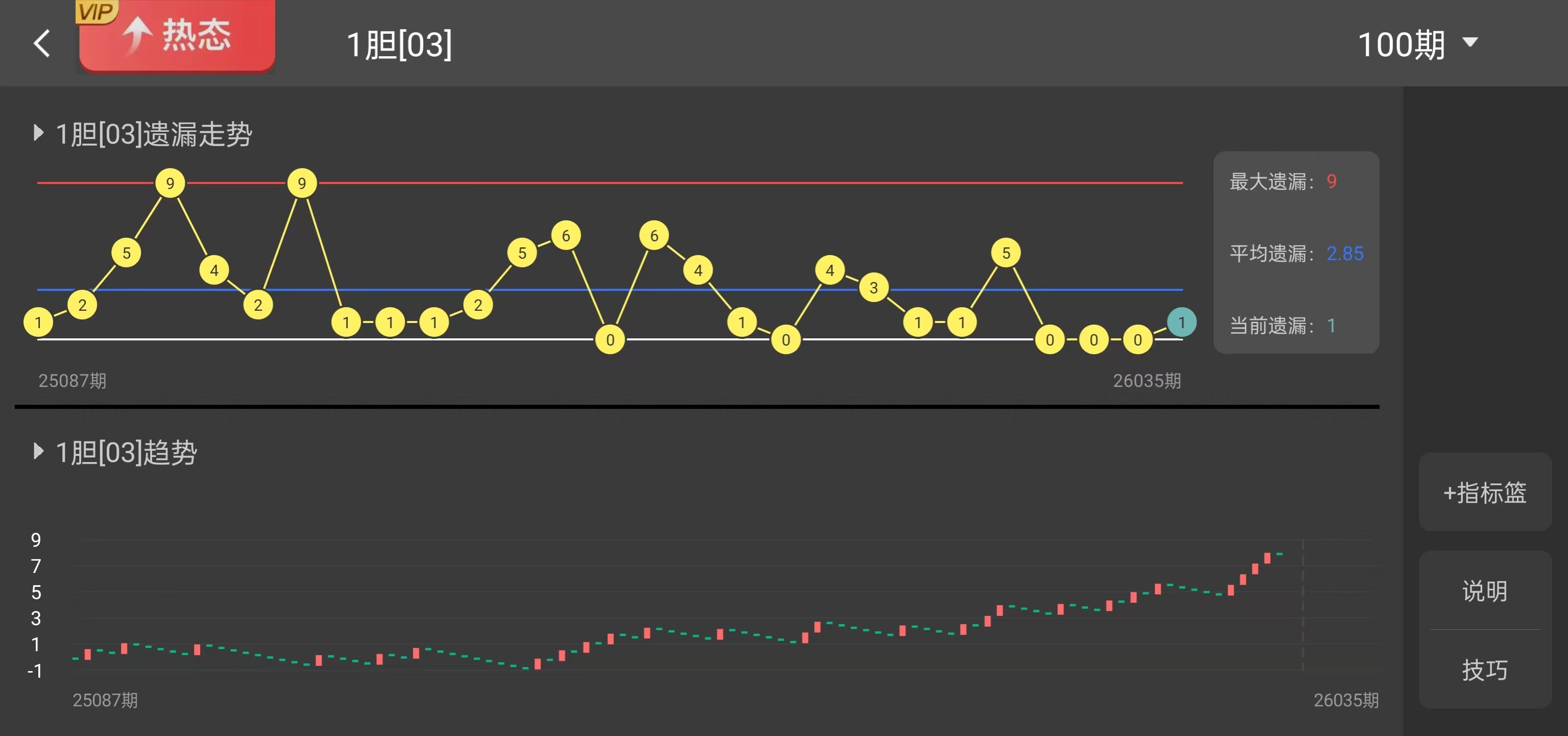 区间分布具备明显的轮动特征。将红球分成三个均等区间后,单期开奖号码极少集中于单一区间,跨区间出号为常态,且存在区间冷热轮动的特点,上期号码集中的区间,下期大概率出现出号量回落。