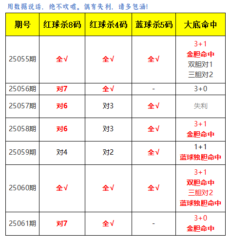 上期红球杀8码对6,杀4码对3,蓝球杀号全对,双胆对1,大底命中3+0,本期再接再厉!