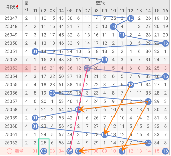结合以上因素,本期蓝球推荐关注号码:02、05、06、11、16。