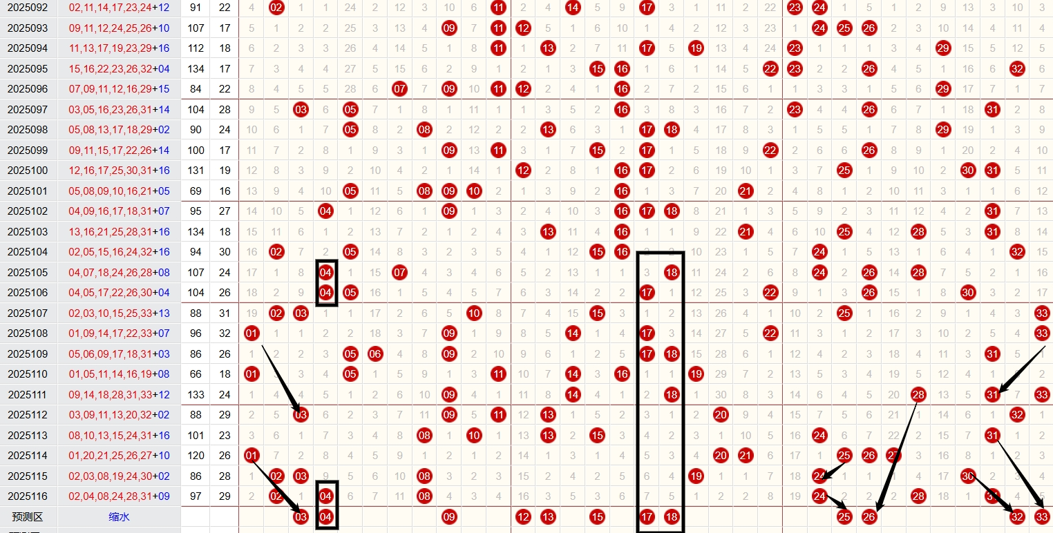 回顾上期25116期开奖02 04 08 24 28 31+ 09,其中一小区01-11出3个,二小区12-22出0个号,三小区23-33出3个!