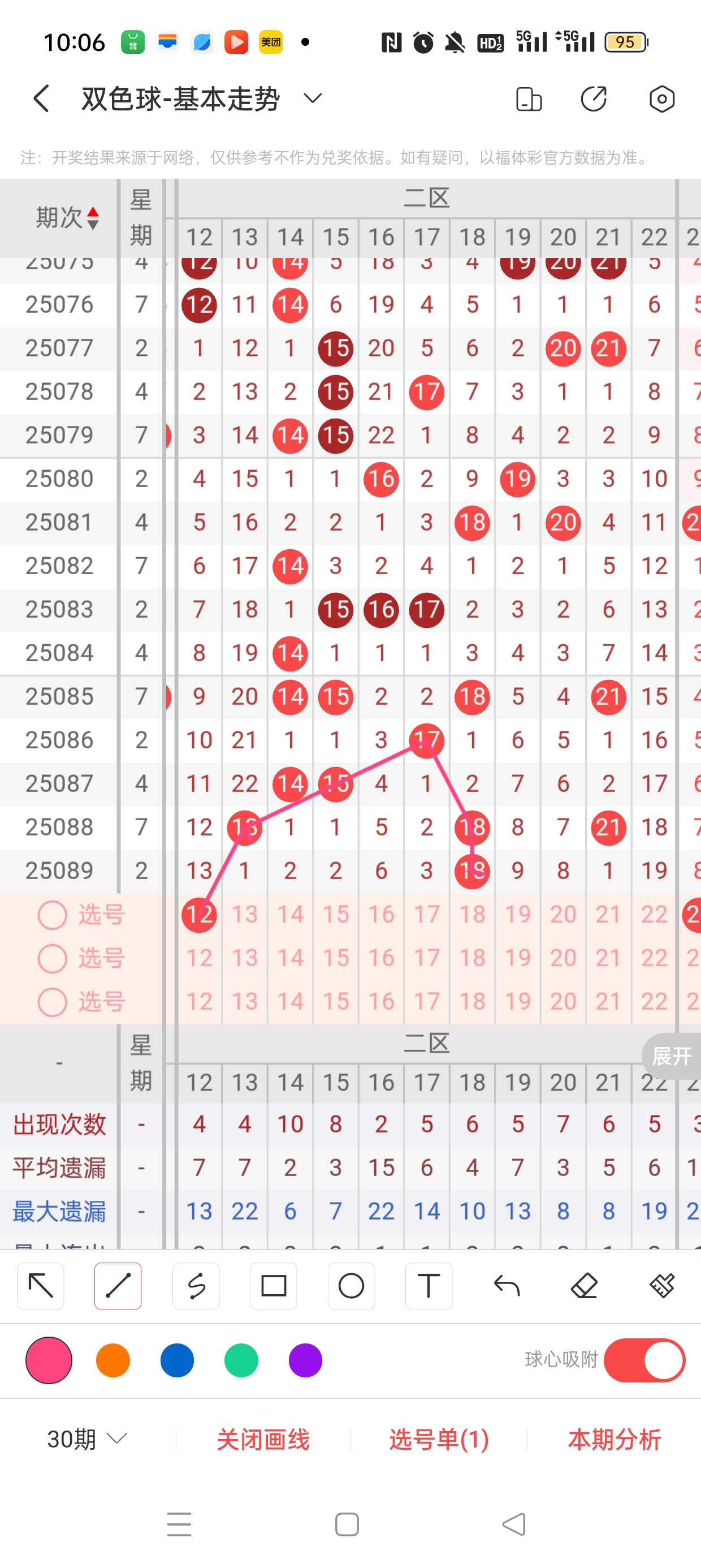 二区(12-22)近87期本区邻孤传46邻73孤13传,孤号热度高,本期着重邻传。近87期本区012路42:51:41,0/1路热度高,本期着重2路。12已遗漏13期,与13之间呈现向左遗漏递减态势,需防。