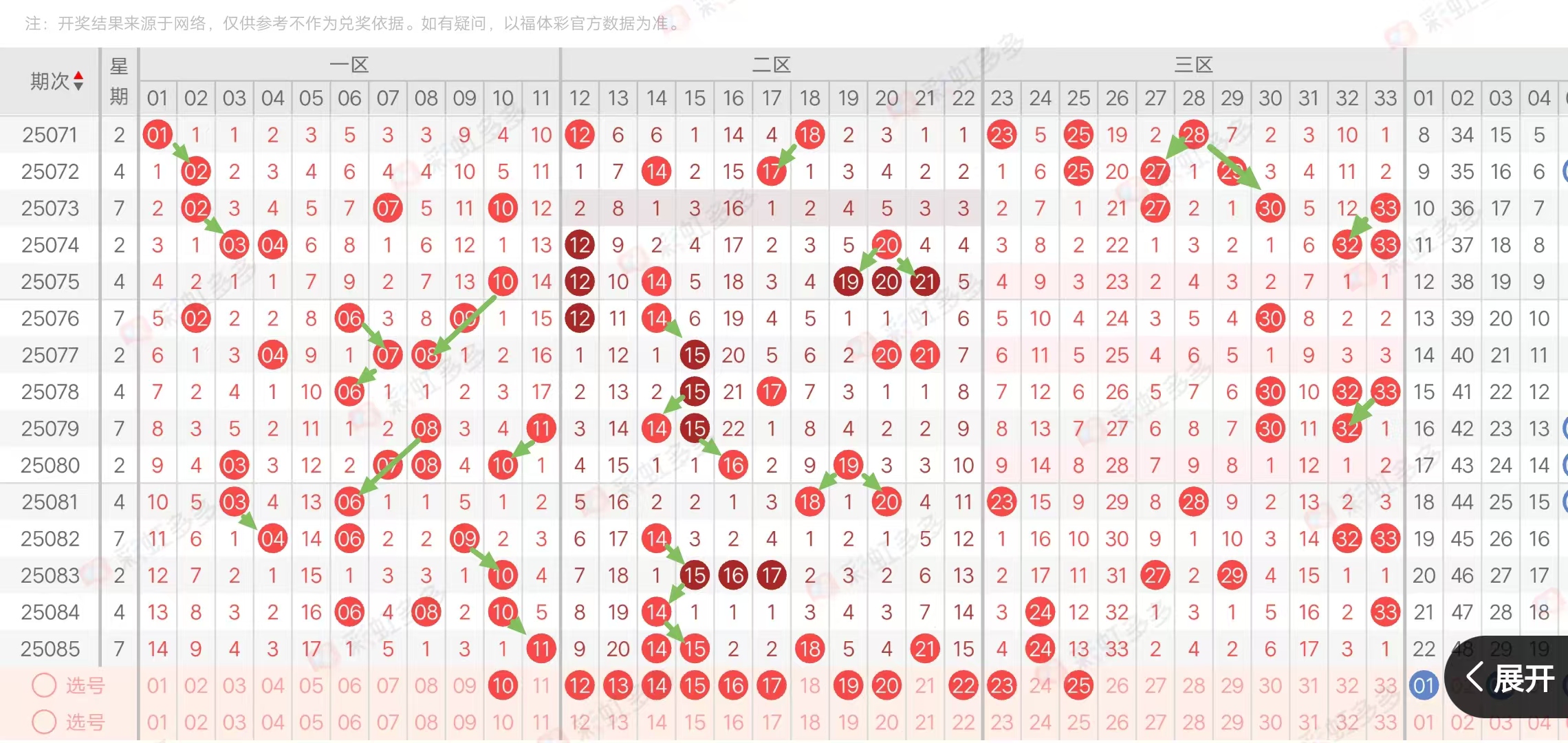 (三区:一区1-11,二区12-22,三区23-33)上期三区比1:4:1