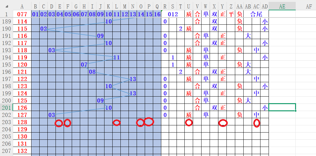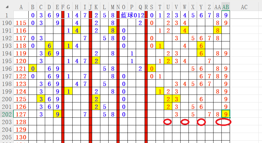 如上图4,012路分析012路,本期重点10路。重点 04 05 11 14 15