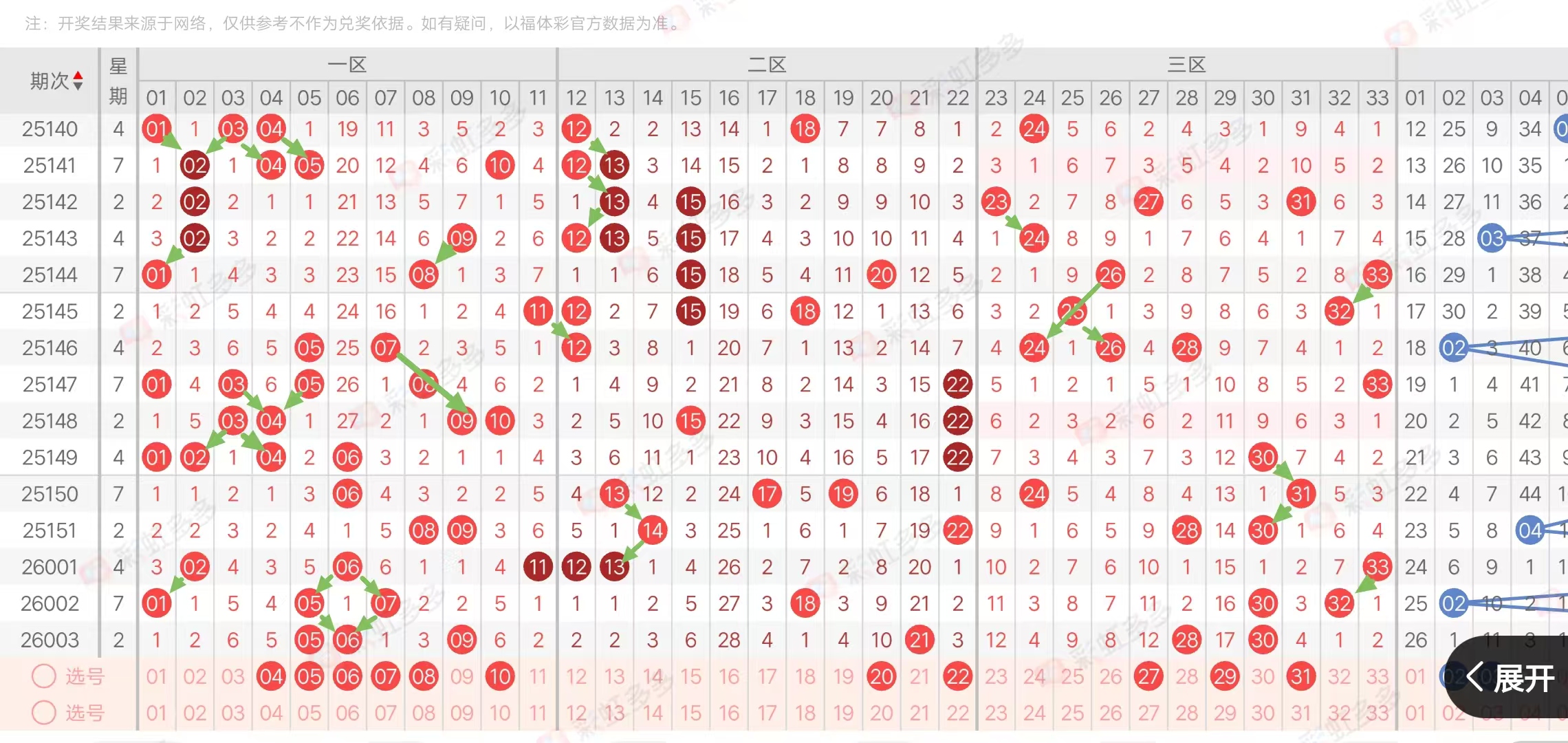(三区:一区1-11,二区12-22,三区23-33)上期三区比3:1:2