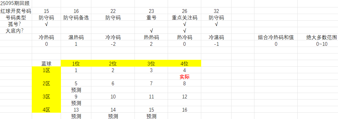 公式:【重号0~2个+重点关注码1~5个+防守码(备选)0~4个+其他类号码0~3个】,孤号2~4个,也是经过了两百多期的验证,通用率95%以上,可以和上面的组合冷温热码范围配合着选,如果有号码属于两种类型,那两个类型号码都计数一次