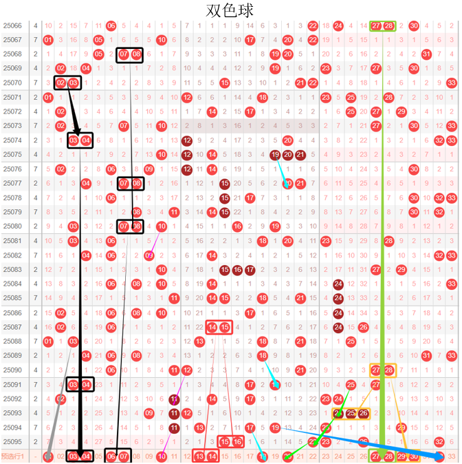 ①红球组合冷温热码和值范围0~10囊括了两百多期号码,极少出现例外,每个号码类型的组合冷热码值在(括号)中标出,冒号:后面是每个号码类型对应的号码