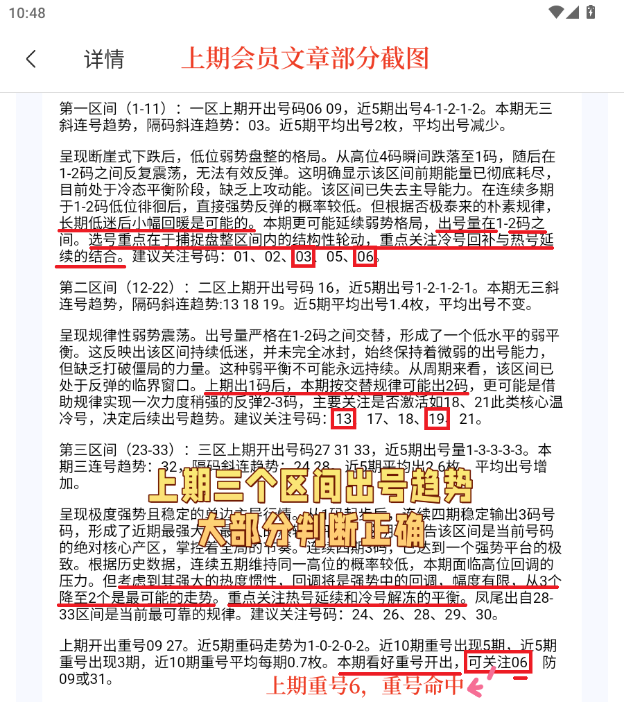 会员文章每个区间给出更详细的分析,说明整体走势的最新趋势,重号和连号均有推荐。