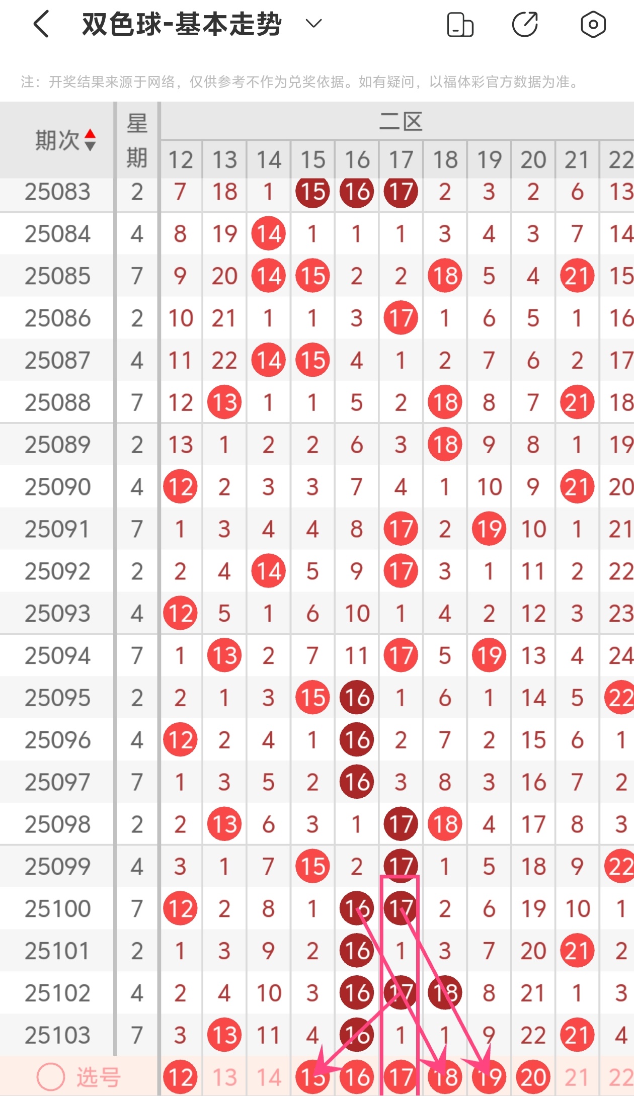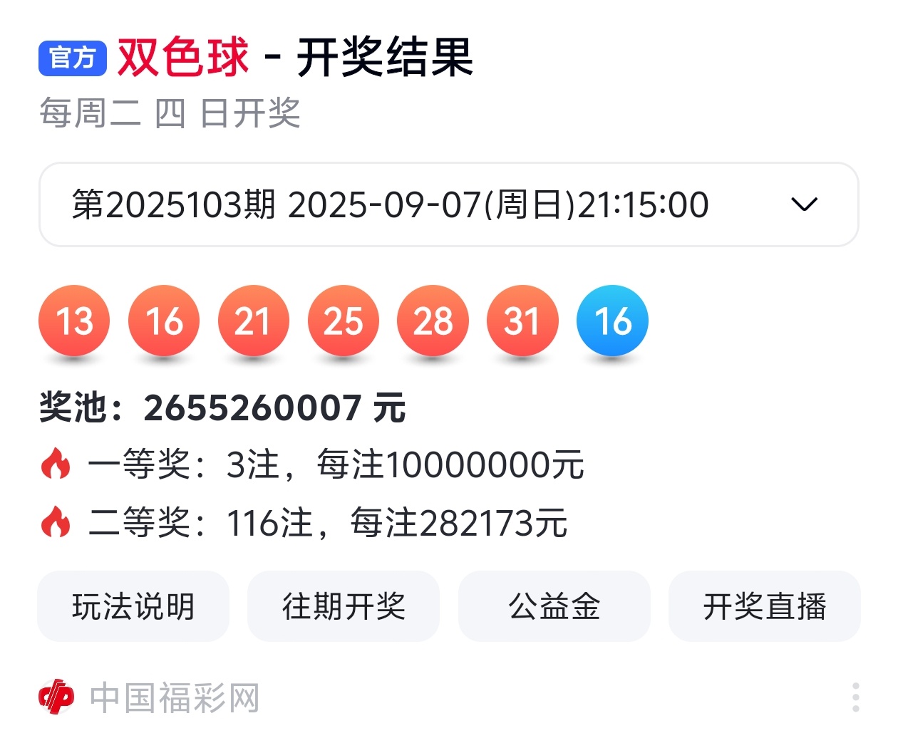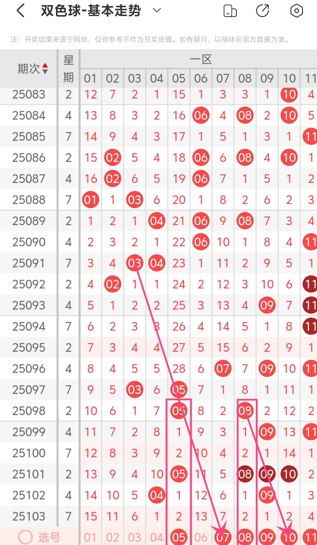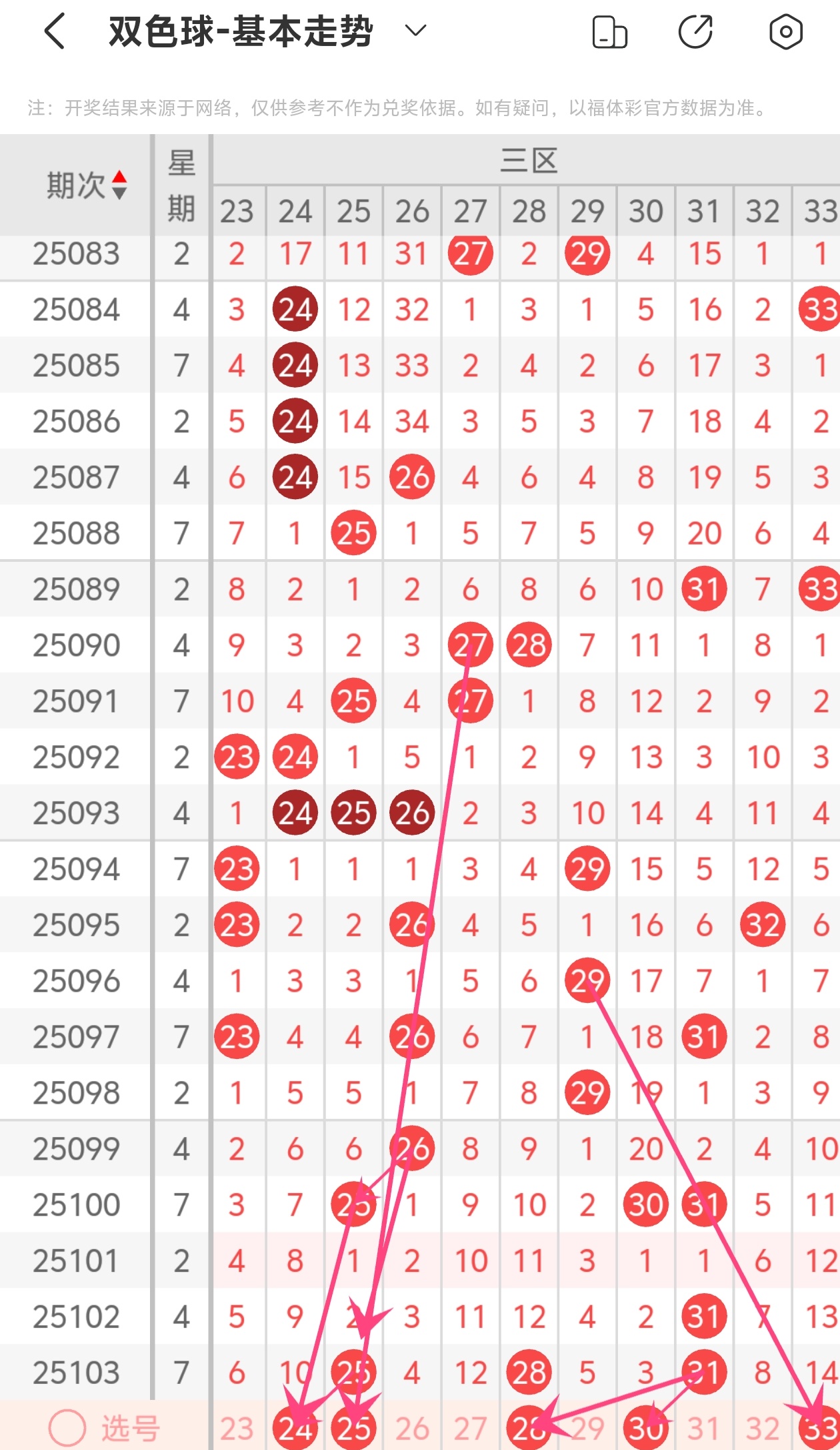 下面是我对2025104期福彩双色球的分析和预判,希望通过我的分析能让大家今晚大红!福彩双色球上期开奖号码如下图: