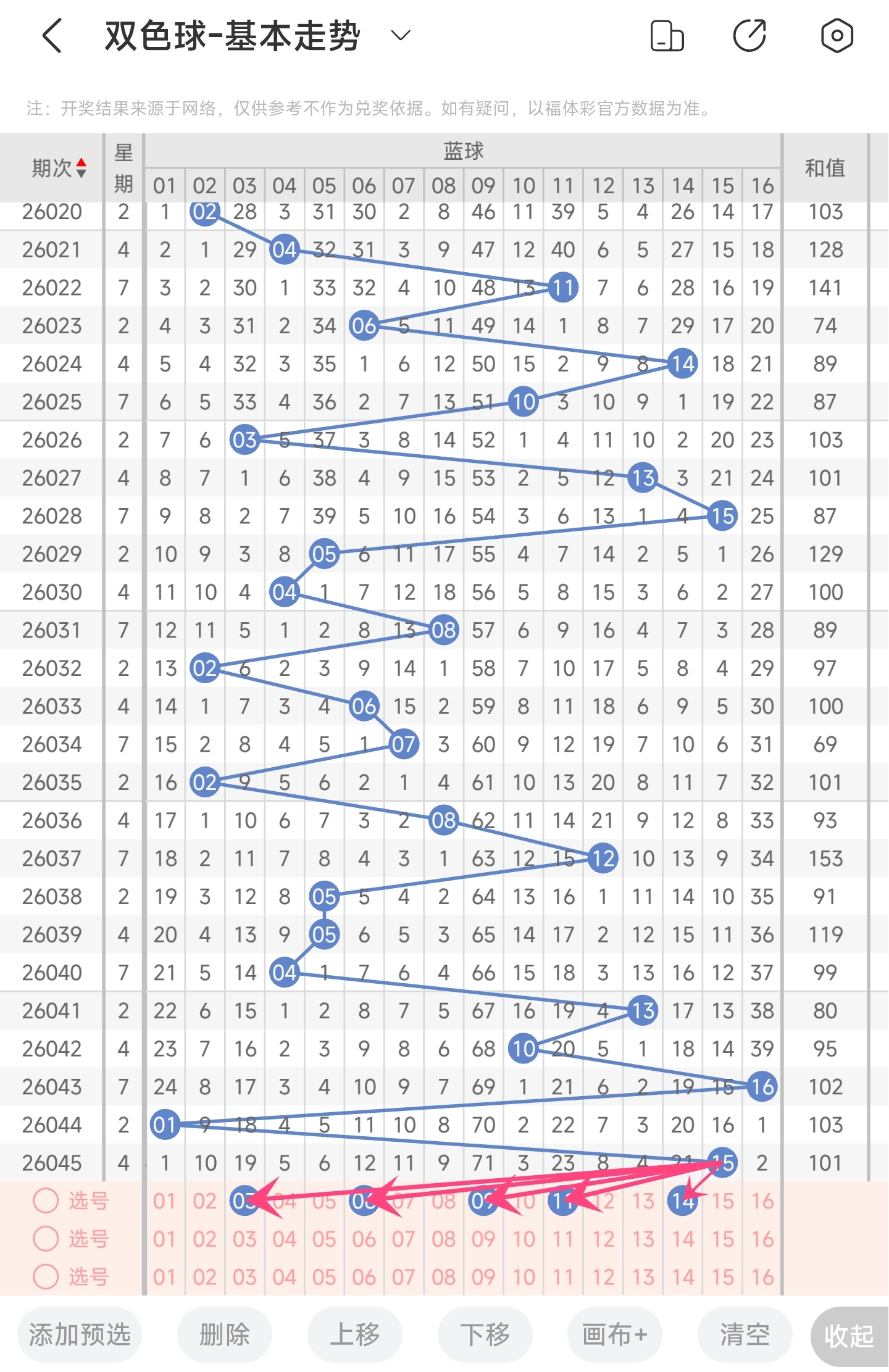 蓝球推荐:3,6,9,11,14。
