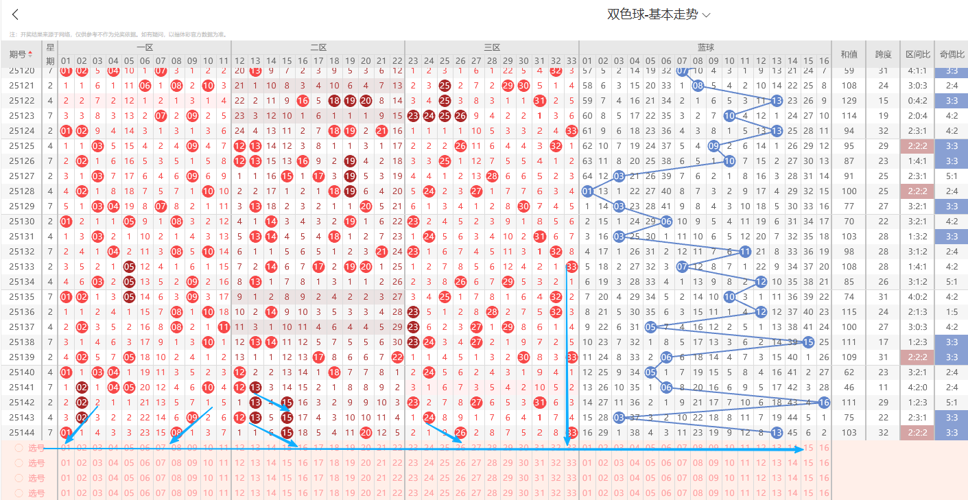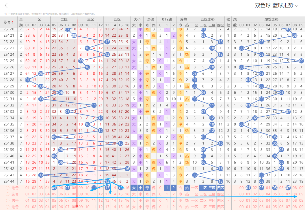 上期开出大号奇数13,从走势上号码整体分布结合折线运行轨迹本期蓝球重点关注五码:05 07 11 13 15参考。有关更多详细选号思路以及号码组合搭配 我们15:00~17:30点有选号思路详细解析的直播节目欢迎大家前来一起探讨交流。