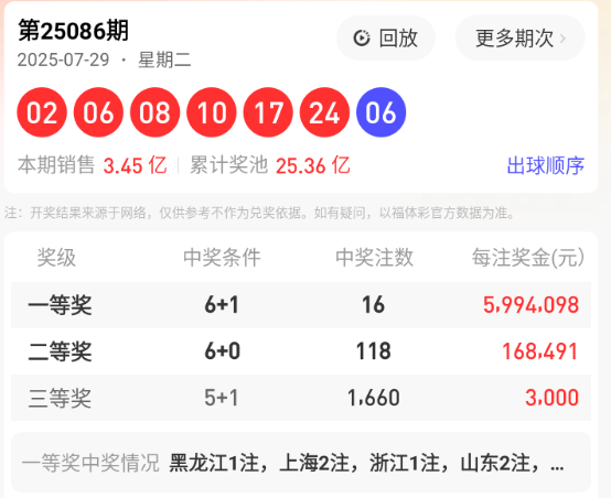 25140期命中5个红球 01,03,04,18,24