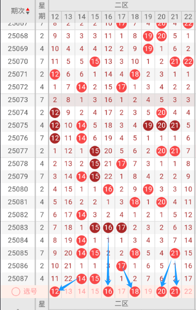 根据走势图可以看出当前区段,078期开出了15.17二个号码球,079期开出了14.15二个号码球,080期开出了16.19二个号码球,081期开出了18.20二个号码球,082期开出14一个号码球,083期开出15.16.17三个号码球,084期开出了14一个号码球,085期开出了14.15.18.21四个号码球,086期开出了17一个号码球 ,087期开出了14.15二个号码球,按照如此规律本期当前区可能开出2双。我们看下当前区上期没有开出重叠号,那么本期当前区要定重叠号的情况下可关注14号码球。再看下当前区上期没有开出斜连号,当期选号得留意斜连16号码球。本区重点关注12.16.18.20.21