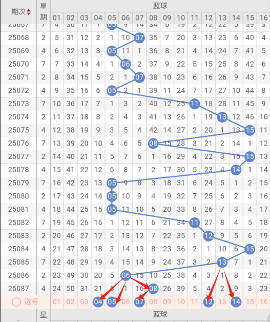 根据走势图近10期的走势看,蓝球在078期开出14蓝球之后,3小4大2小,再看下近10期的蓝球热码有回补的趋势,这种趋势规律本期判断极有可能开出小号,本期防蓝球11大号,蓝球本期重点关注04,05,07,12,14