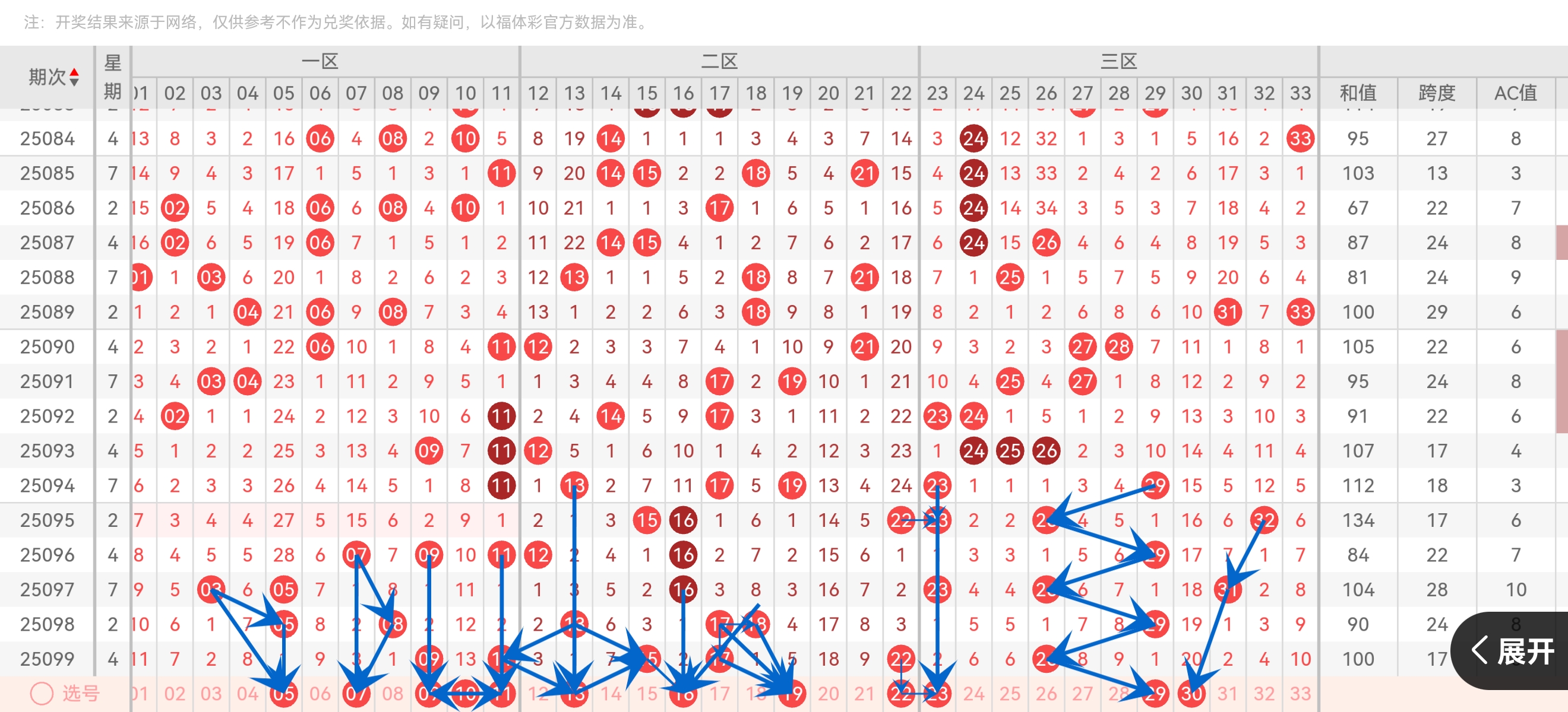 一区(1-11):预计2-3码重点关注:05、07、09、10、11二区(12-22):预计2-3码重点关注:13、15、16、17、19、22三区(23-33):预计1-2码重点关注:23、25、26、29、31
