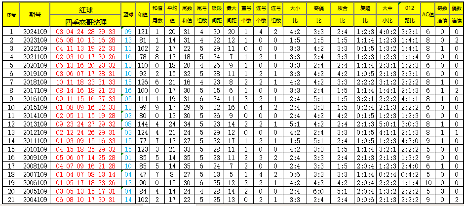 附:2003年起每年109期开奖号各类数据及9月21日同期开奖号各类数据,供大家参考!大佬和彩友们速速拿走~