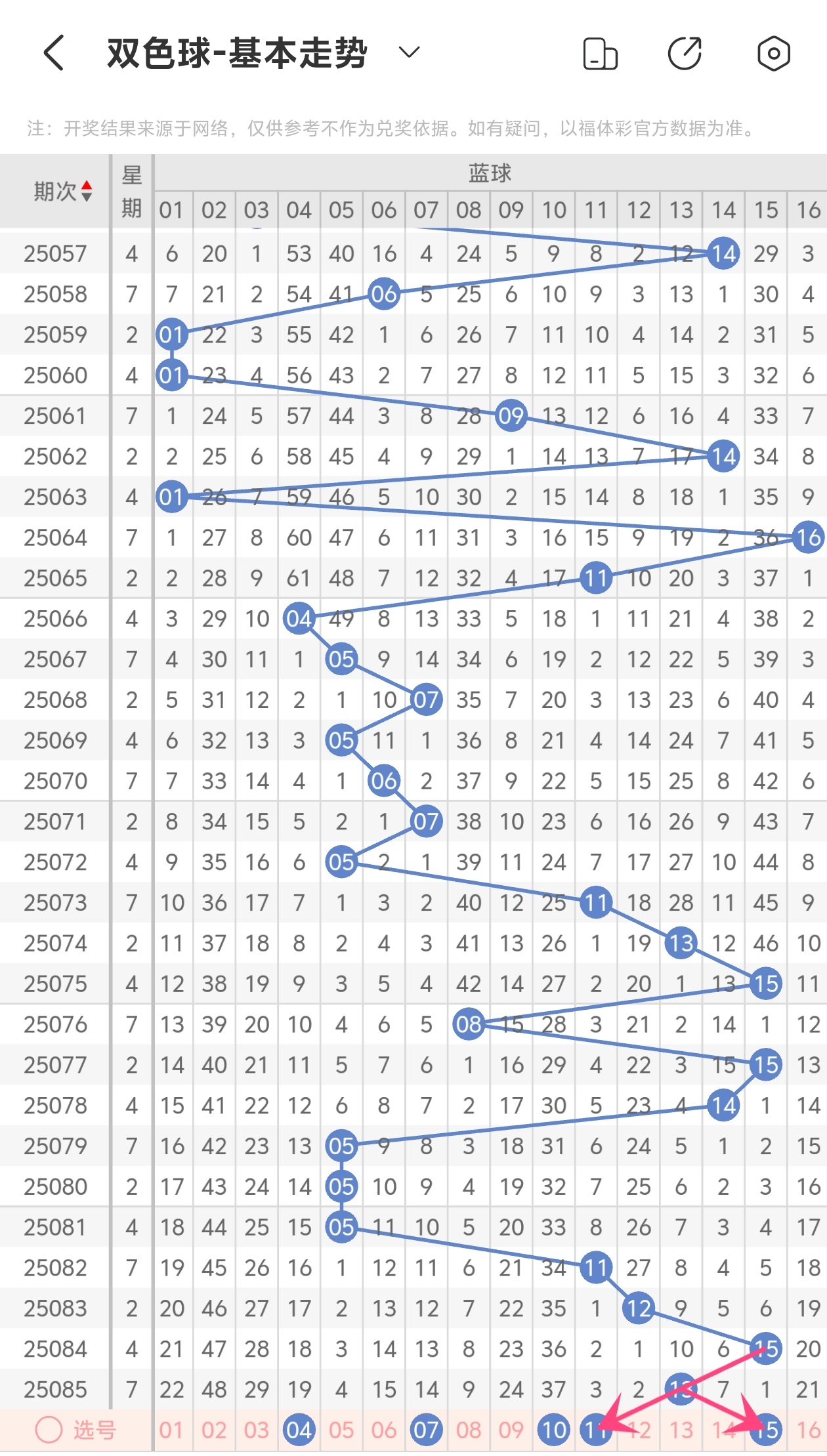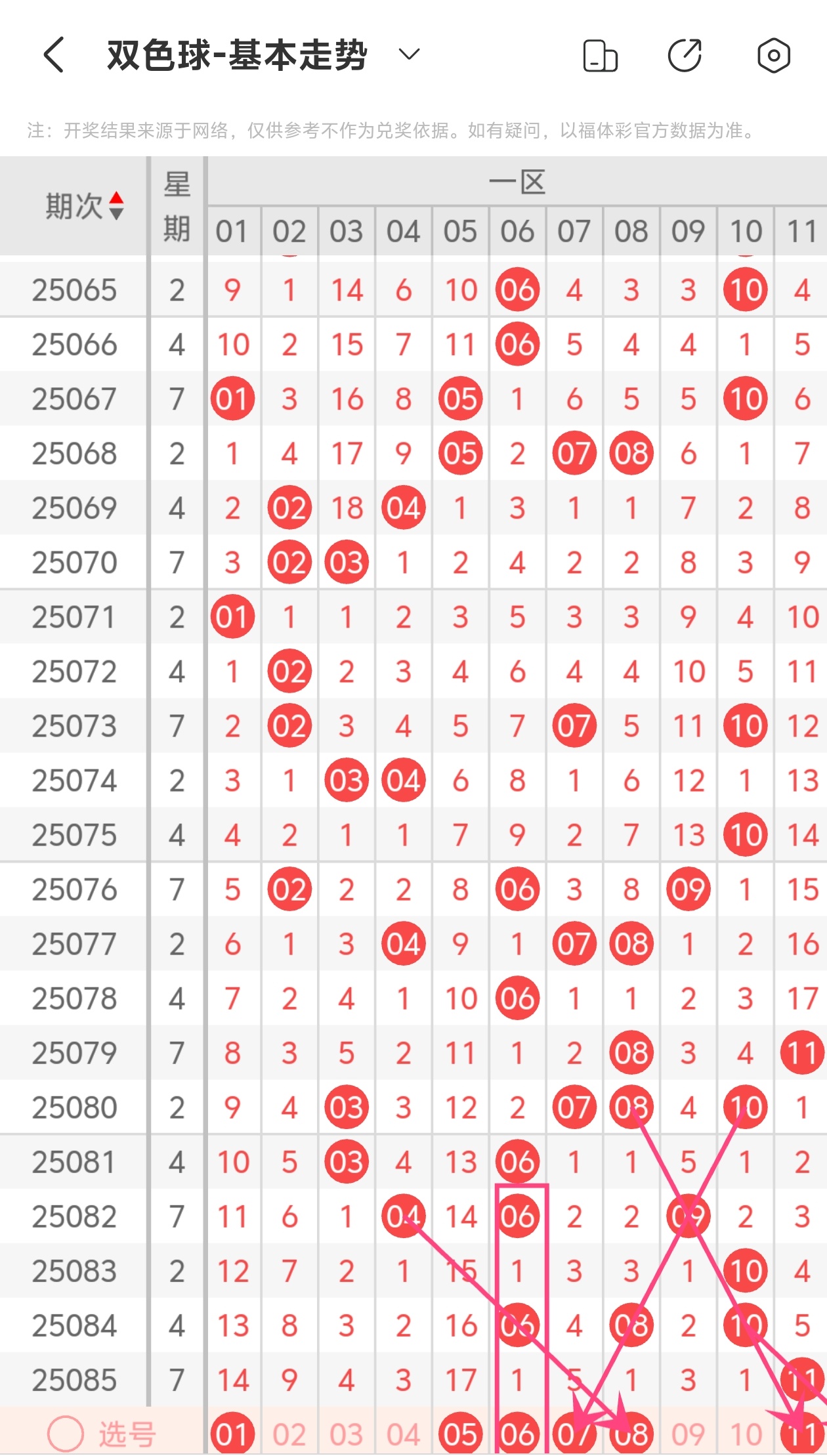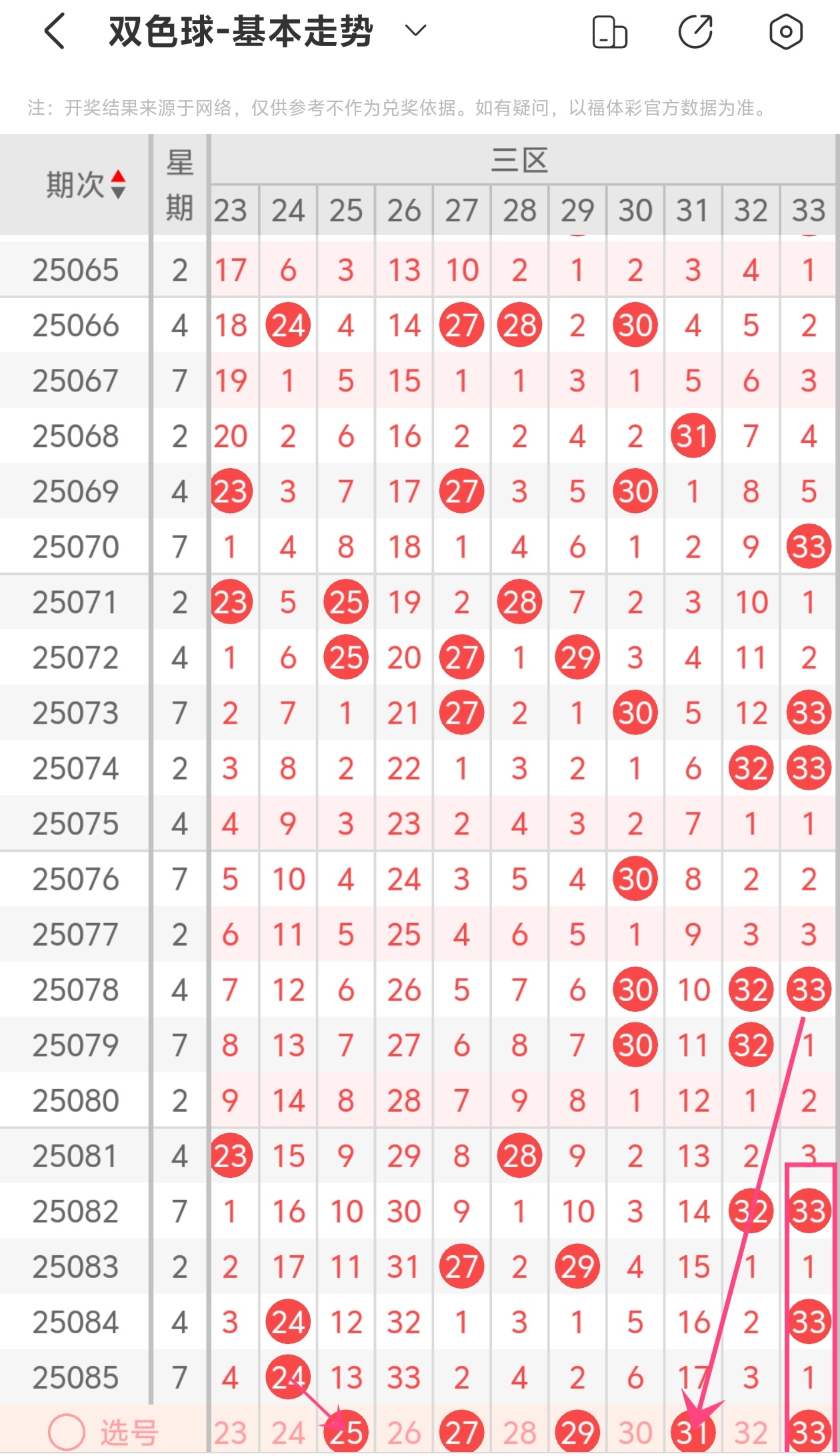 下面是我对2025086期福彩双色球的分析和预判,希望通过我的分析能让大家今晚大红!福彩双色球上期开奖号码如下图: