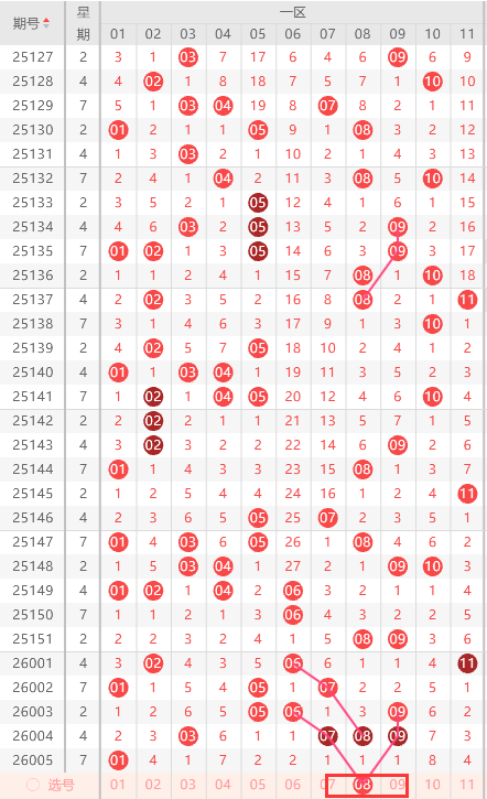 本区间重点关注的号码球为08和12两号码球