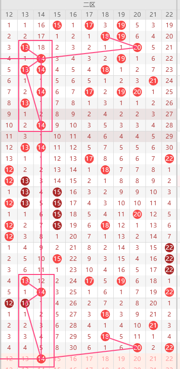 二区间:12-22号码球(红球)
