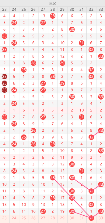 三区间:23-33号码球(红球)