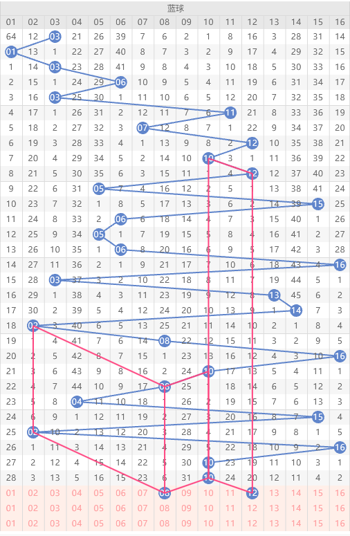 第一个号码球12号码球为10隔期回补12走势形态与往期走势形态相仿并且近期近期后区下落偶数的频率较高还有12近百期多次出现隔偶期数下落形态走势本期为隔20期下落,综上所述满足三个支撑点条件,所以定12号码球是本区间重点关注号码。