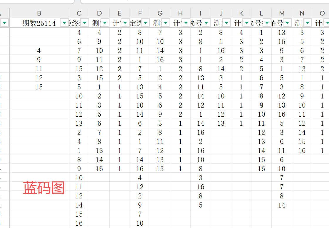 首先可以看一下蓝码的对比结果通过两个图表数据的对比,我们把蓝码的范围确定为4 9 11 12 15