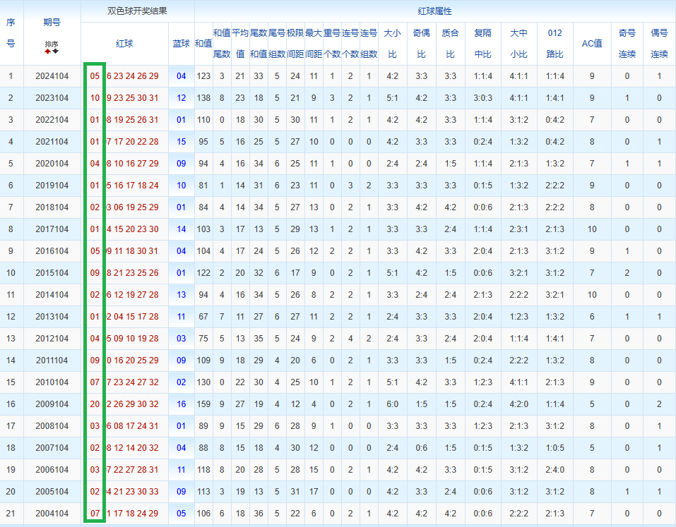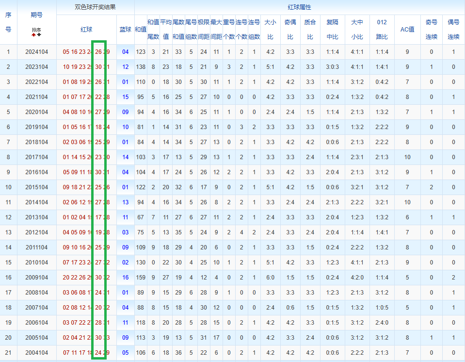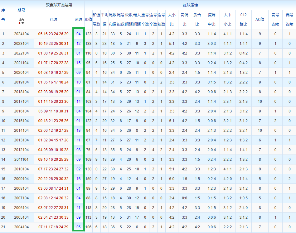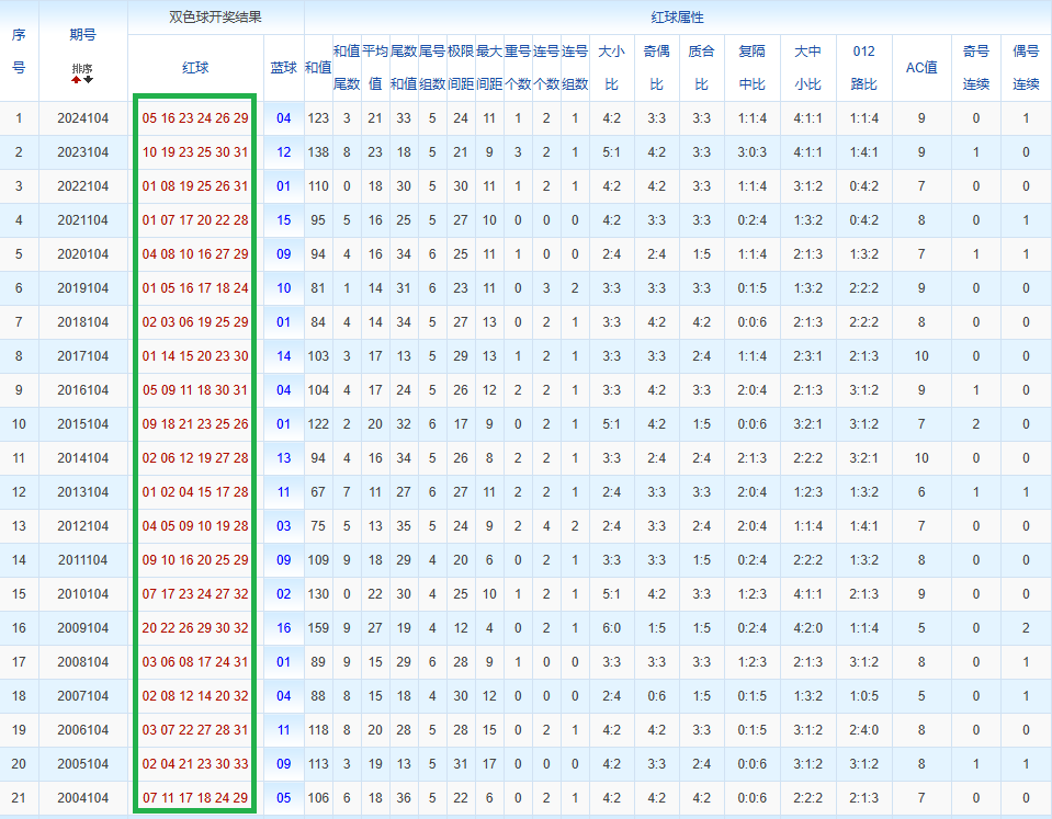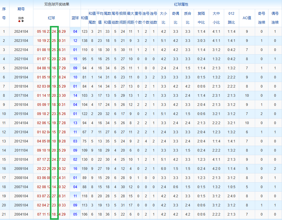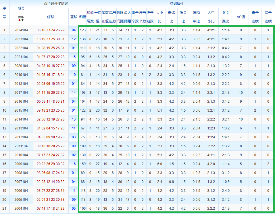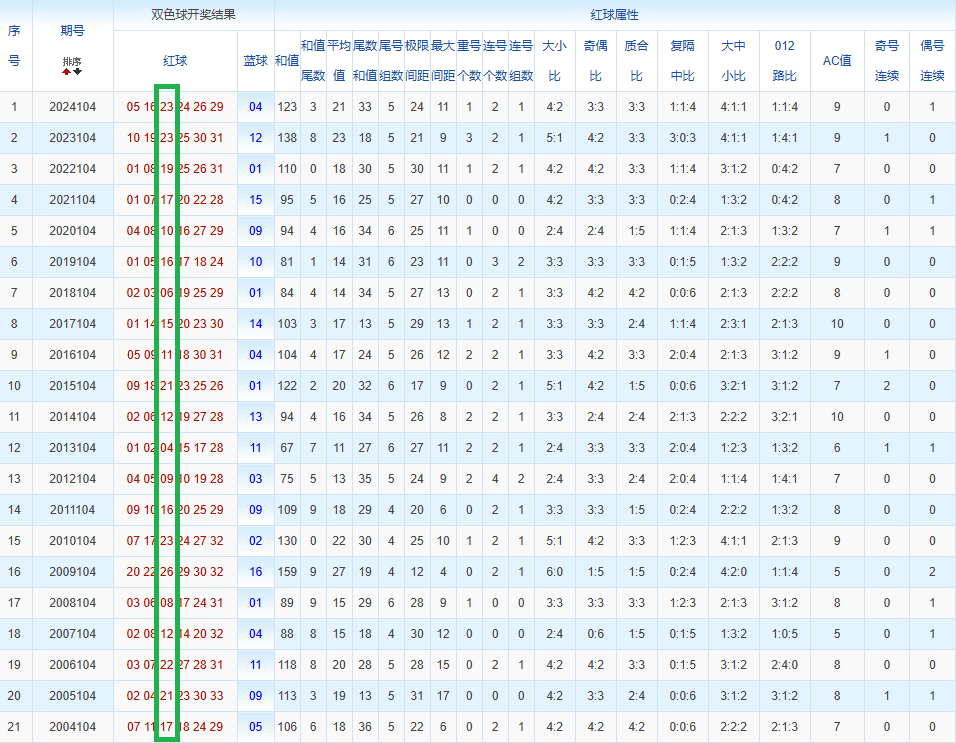 通过观察,我发现双色球往年同期的开奖数据与本期号码之间存在显著关联。具体来说,在红球中,从第一位至第六位,通常会有约4个位置上的数字与往年同期相同位置的号码一致;而蓝球号码中,也有多期开奖结果直接包含了往年同期的数字。因此,我们可以借助往年同期各位置上的号码,作为分析本期开奖情况的重要依据。在此基础上,还可结合往年同期的其他相关条件,进行综合性的号码组合推荐。