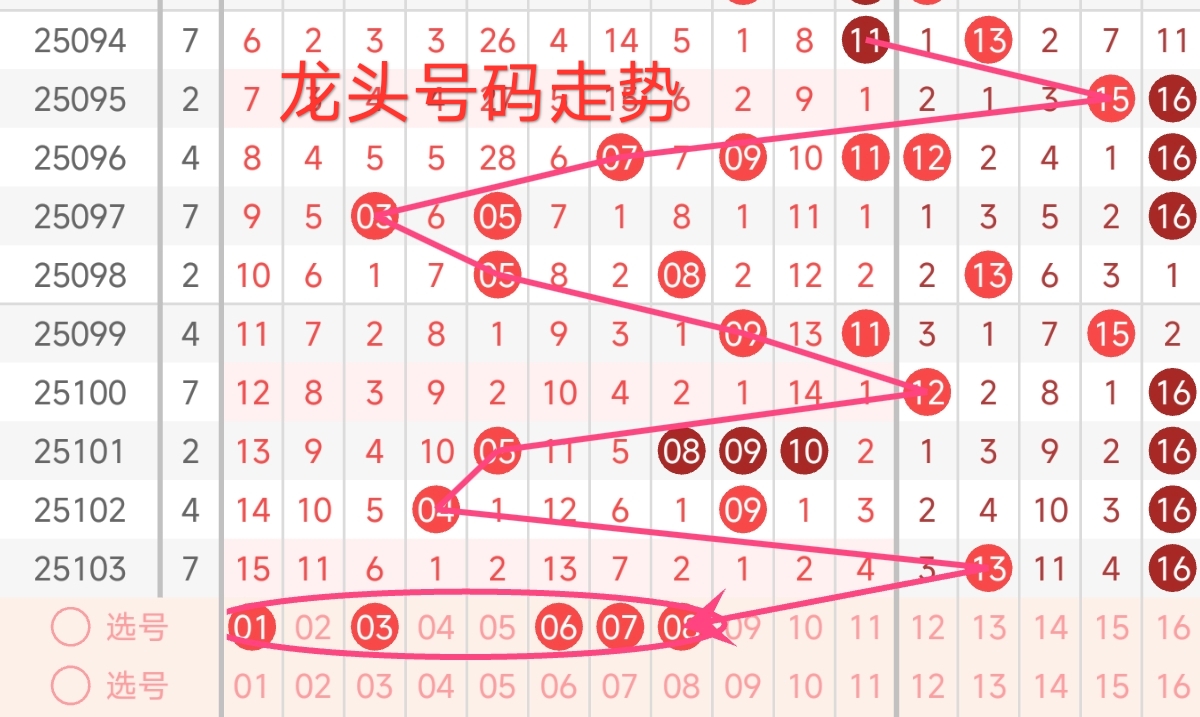 龙头号码走势分析: