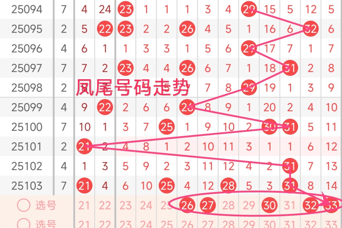 凤尾号码走势分析: