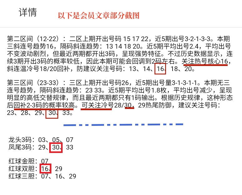 各位彩友可以根据需要购买,会员文章中每个区间给出了更加完整的思路参考,再结合自己的思路,提高命中率!