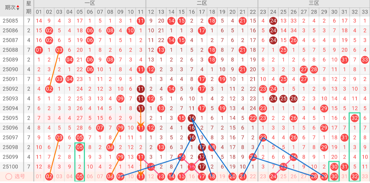 根据以上特点,我们对双色球第25101期进行如下分析: