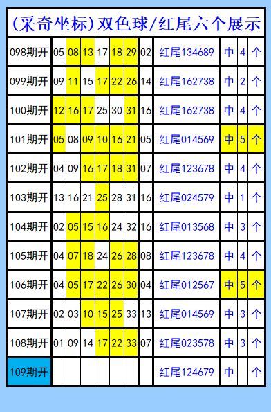 双色球第109期图文(采奇坐标),红尾六个展示