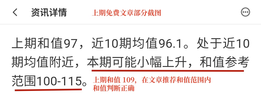 上期和值109,在免费文章推荐范围内,文章判断正确!