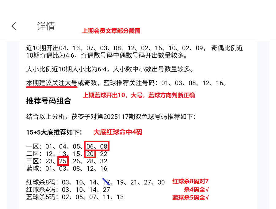 结合以上分析,茯苓子对第2025118期双色球号码推荐如下: