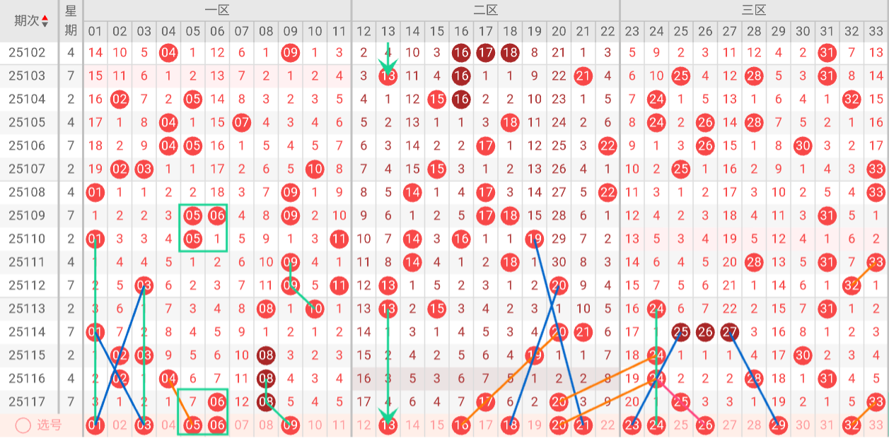根据以上特点,我们对双色球第25118期进行如下分析:
