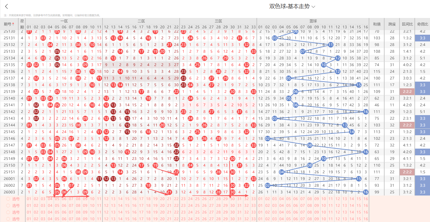 一、红球特征分析:(通过整体走势不难看出每期开奖号都具备以下明显的特征点)
