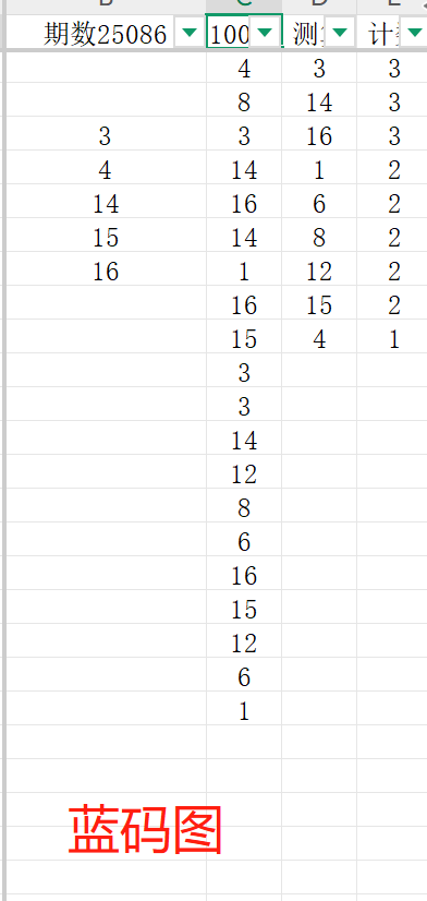 首先可以看一下蓝码的对比结果通过两个图表数据的对比,我们把蓝码的范围确定为3 4 14 15 16