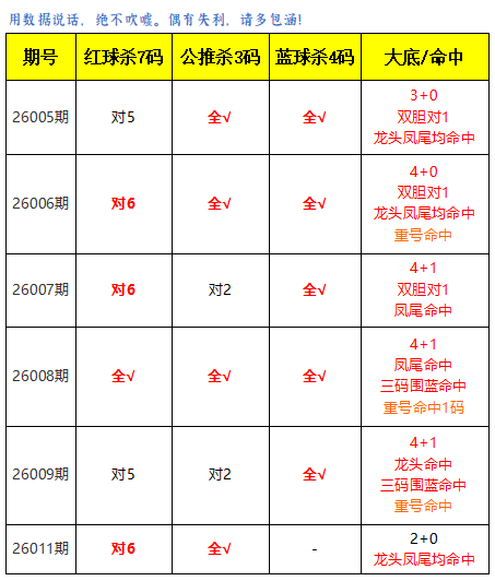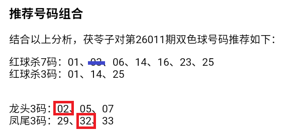 茯苓子双色球26012期:综合分析+杀号推荐!上期龙头凤尾均命中