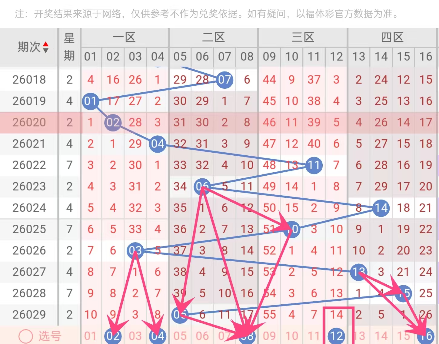 推荐蓝球:02、04、08、12、16