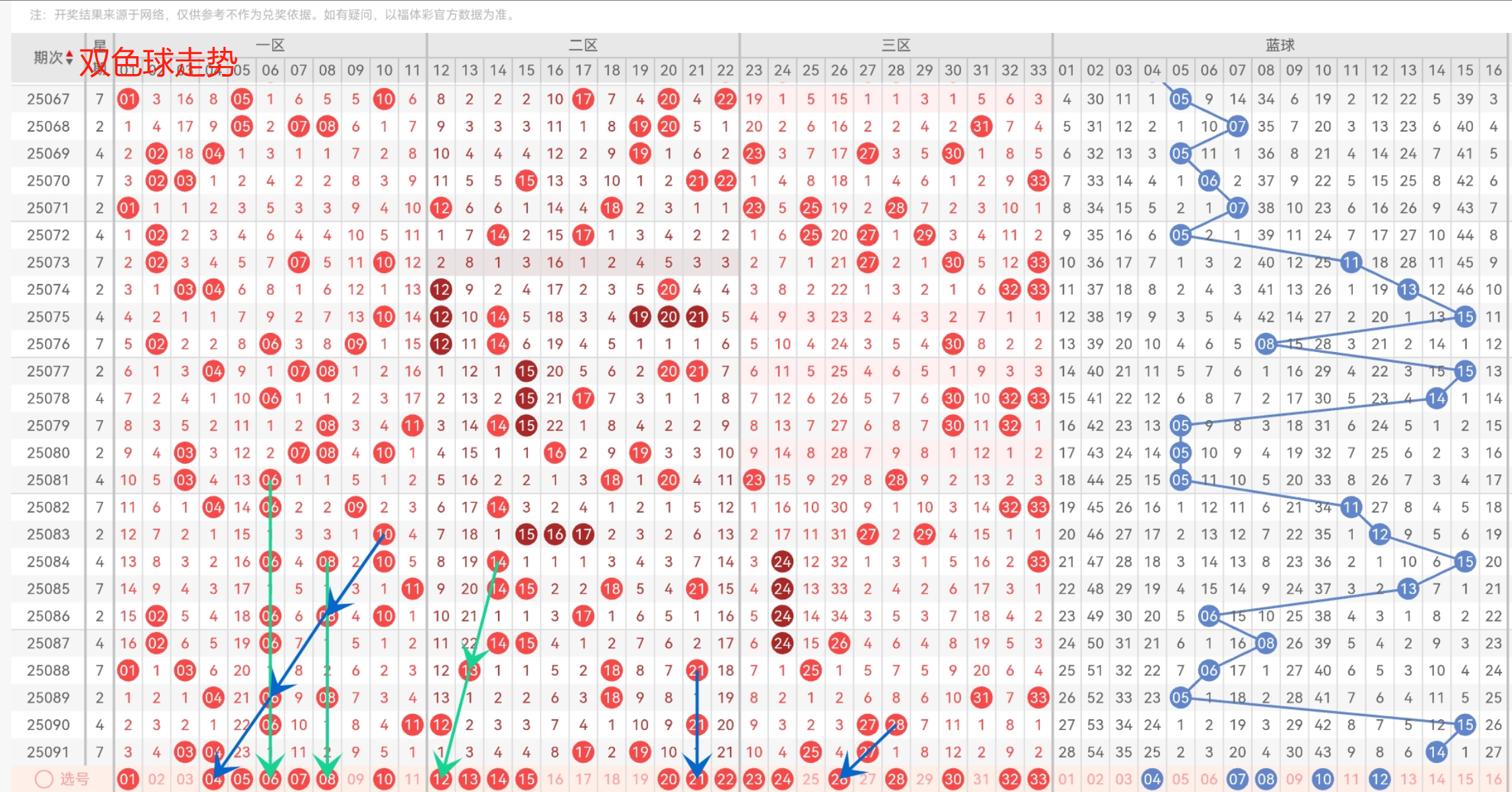 蓝球区,仔细研究就就会发现,蓝球最近30期出号都是一堆一堆的,先出几个二区,再出几个三四区,然后再回来二区的;所以....(留给会员文章吧);